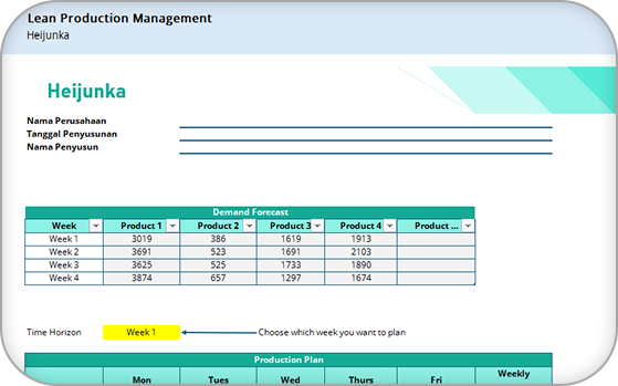 Seimbangkan antara beban produksi dengan beban kerja menggunakan metoda Heijunka untuk mengurangi fluktuasi dalam produksi.