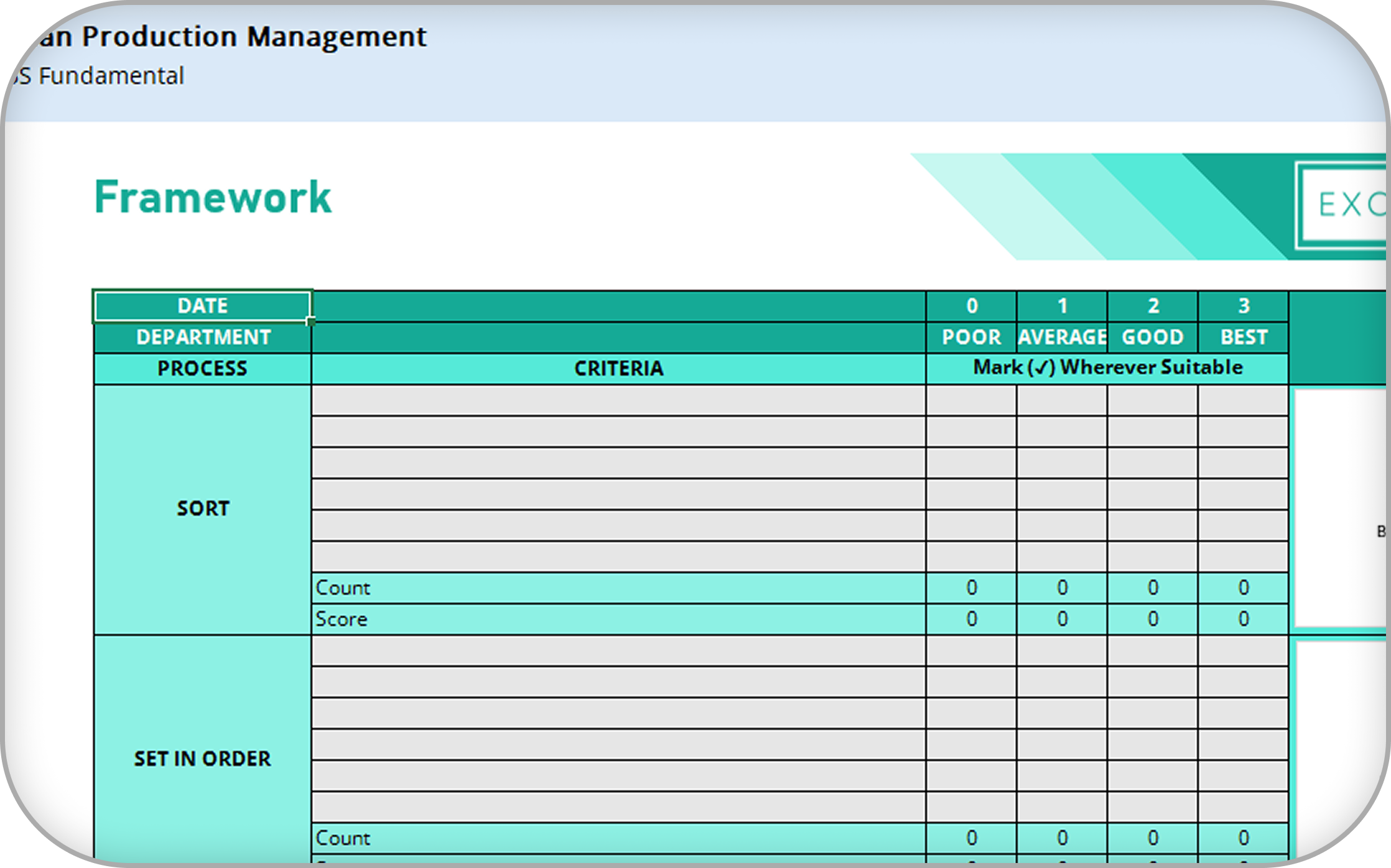 Fitur ini dapat mempemudah Anda dalam mengaudit data dengan menggunakan metodee 5S checklist (Sort, Set in Order, Shine, Standardize, Sustain).